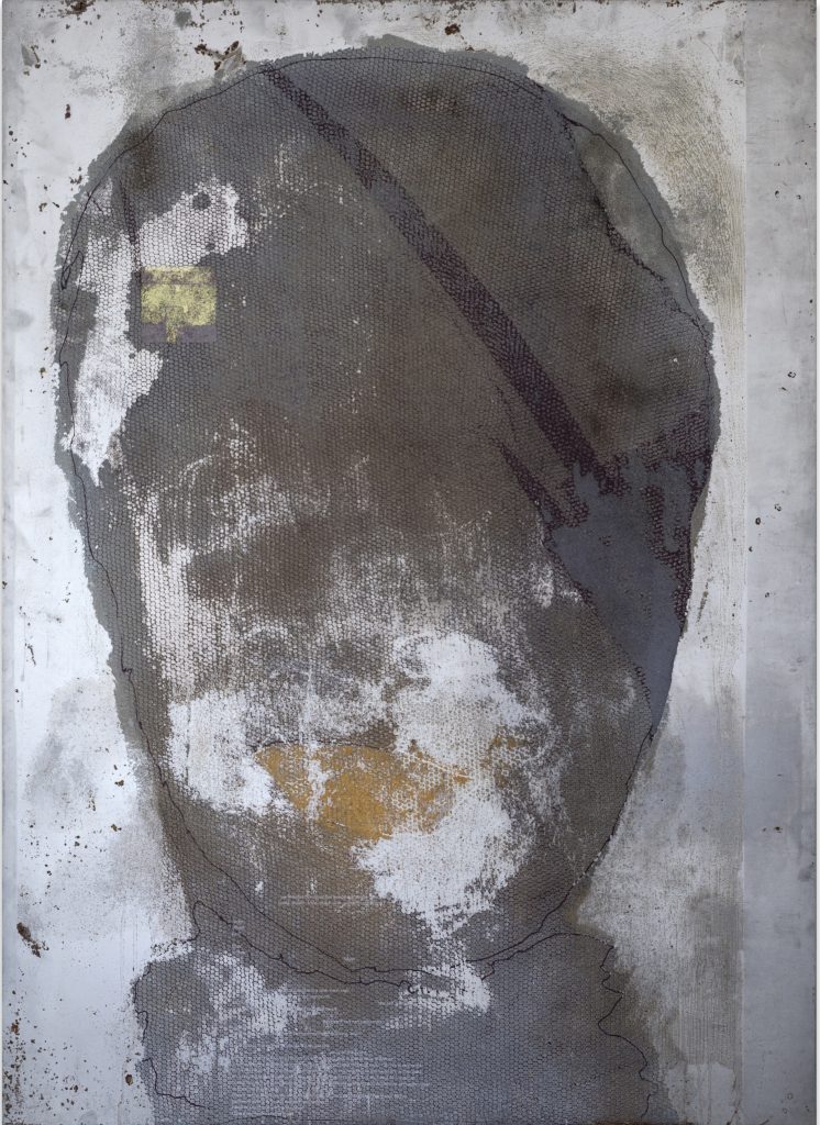 screenprint, monoprint, cast iron powder on steel (white text) 118cm x 84cm