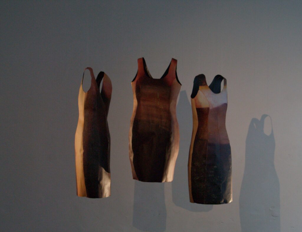 Paper Dress- roguescreenprint, monoprint constructed into 3d dress